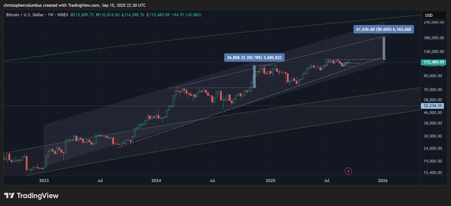 To begin with, it would only take a 50% move from previous highs to see 180k reached making that target technically feasible… the number gets big fast. Given that such a move happened relatively recently, it would not even require a parabolic move… though no doubt there would be some excitement in the market given the large number.