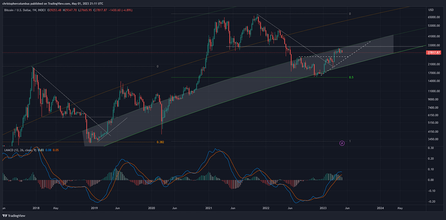 As seen in the chart, though naturally the current set-up is comparable to 2019, with that kind of explosive move always a possibility, the dynamic of the current situation, and as focusing primarily on the weekly MACD, a momentum indicator, looks quite different. As opposed to another parabolic run, which 2019 essentially was, even in only a mini parabola, price action here looks more conventional - corrections following on from solid moves up… a series of higher lows and higher highs.