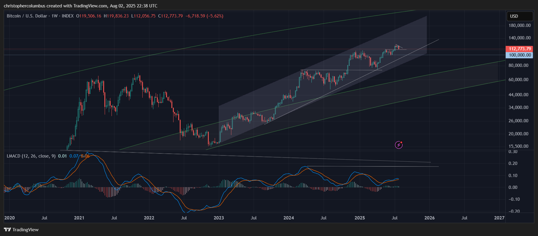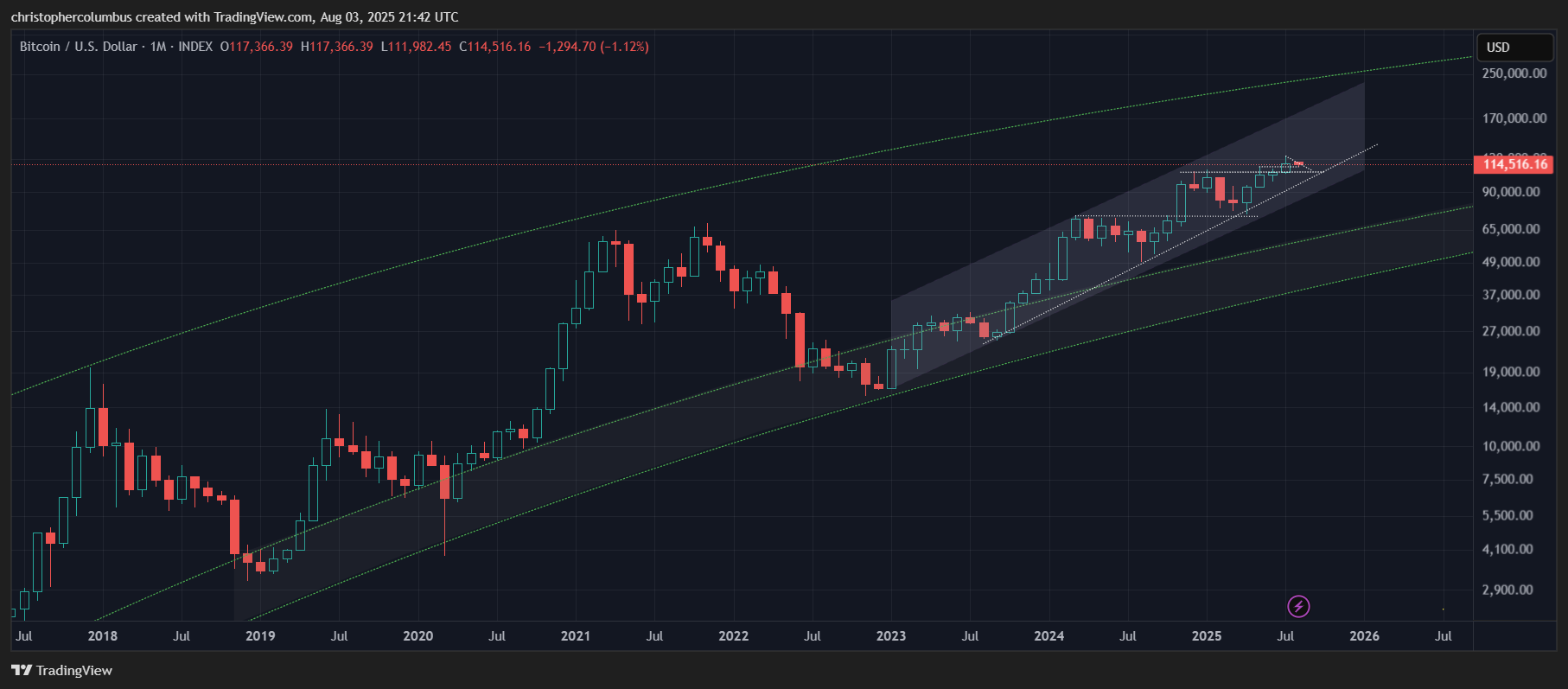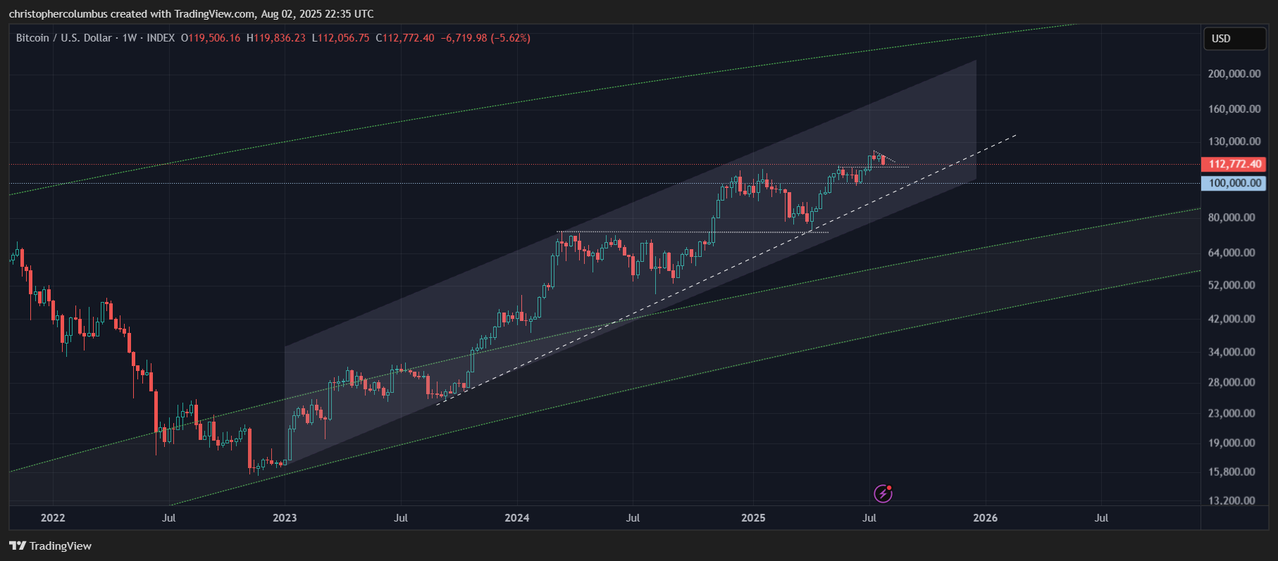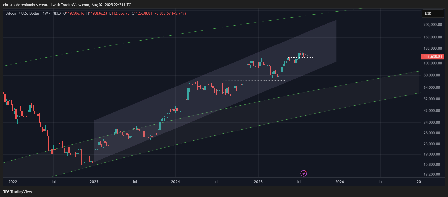 There is yet some wiggle room on the downside - the resistance come support level, if to be more strictly drawn, can be lowered a little to a later level where more resistance was found. Also the steepest upward channel is starting to look redundant. No cause for alarm as more stock is to be placed in the horizontal level as opposed to the diagonal. And so 111k becomes the most significant area to watch in the shorter-term in my opinion. If this fails, there is plenty of longer-term support coming through.