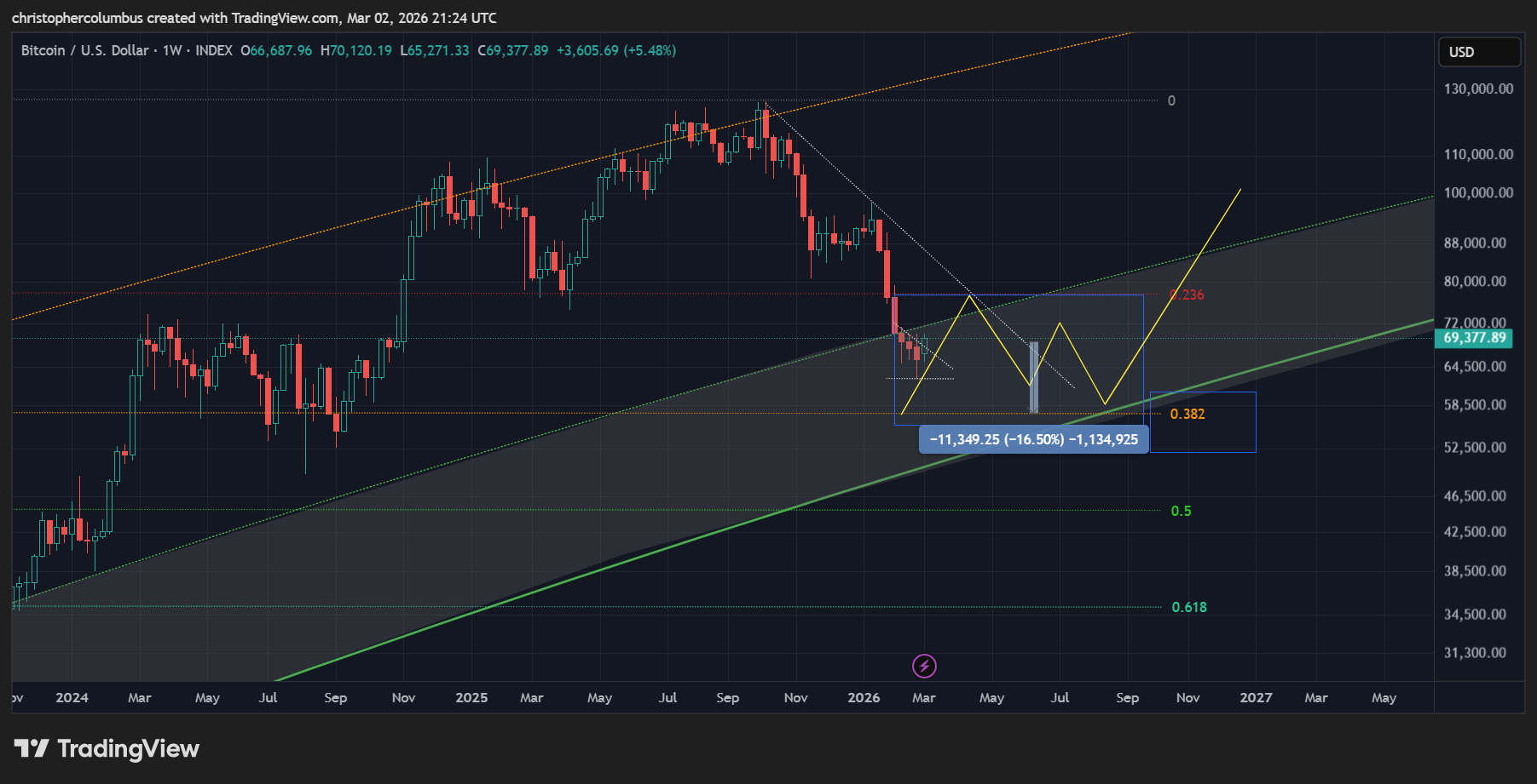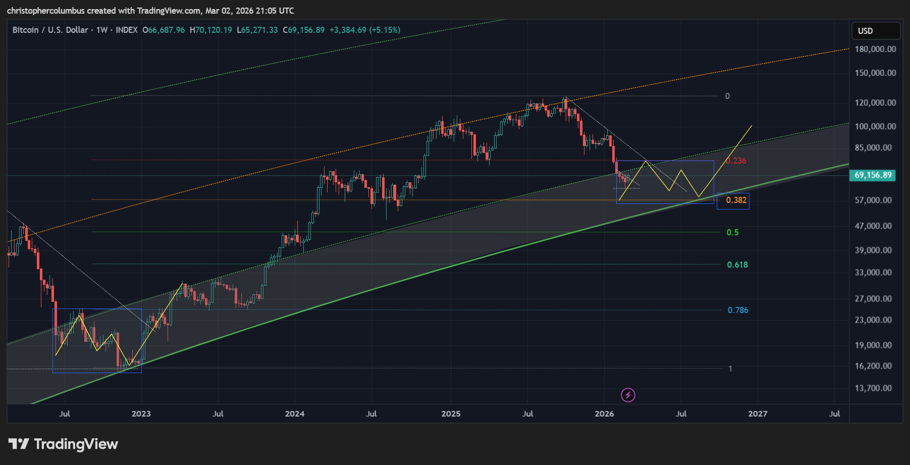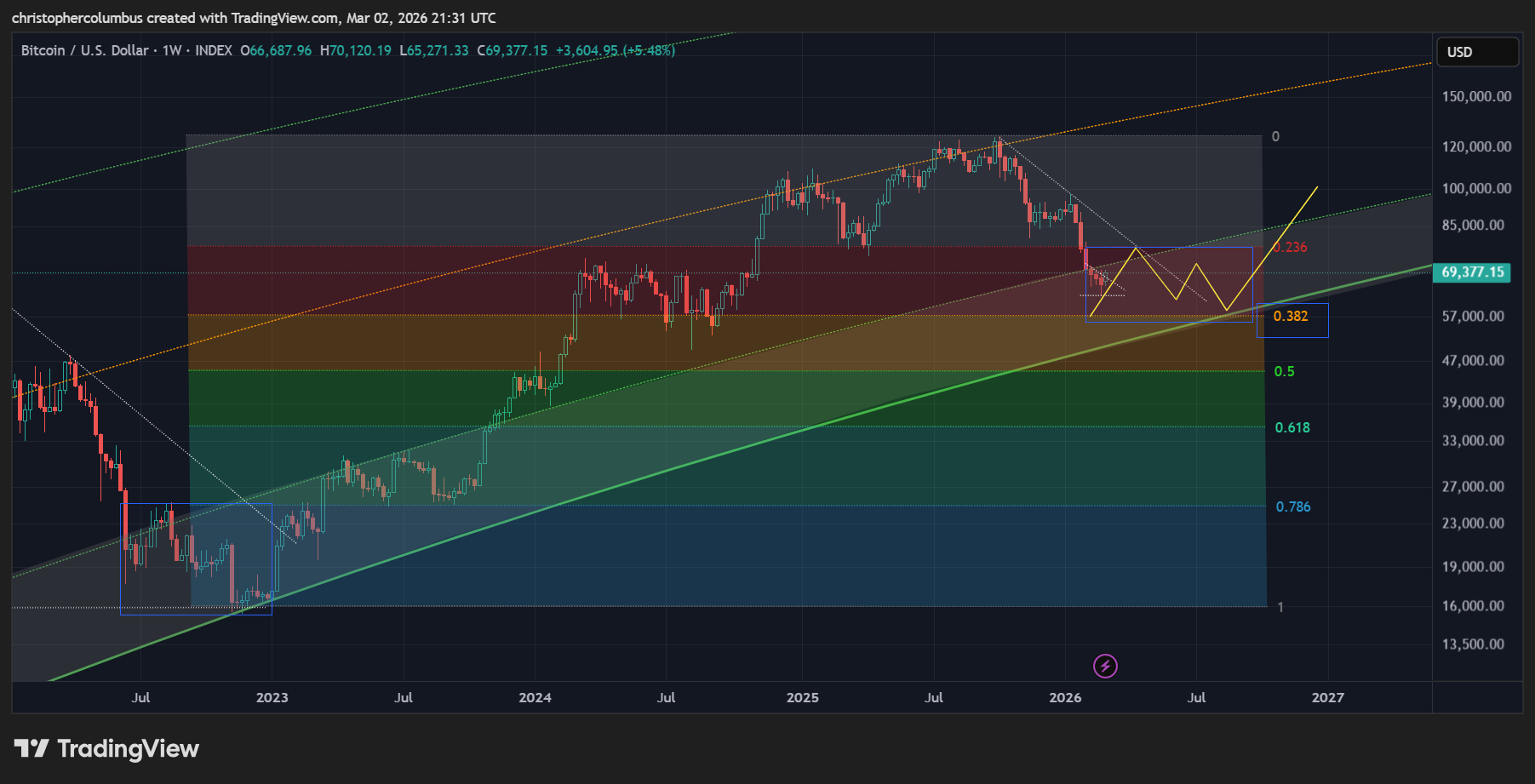 Something to keep in mind here is that price is now in the ‘buy zone’ according to the LGC model that has held true since 2018. This is the area in which previous investors [and for that matter traders] have done the best. The investor who has bought and held a core position continues to do well despite the macro corrections [as marked by the blue arrows]. These periods have also naturally been the periods of maximum fear and FUD.